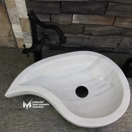 Beyaz Mermer Damla Model Lavabo