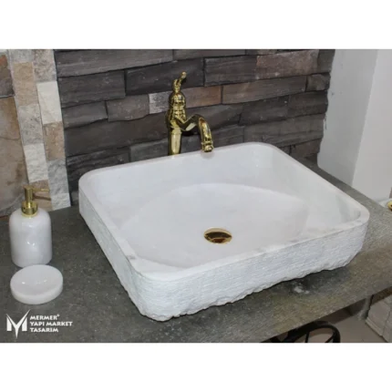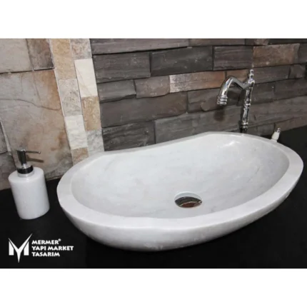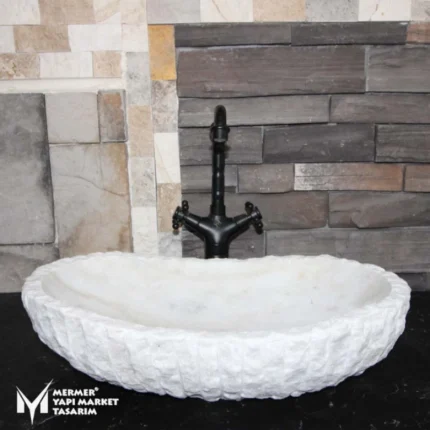 Beyaz Mermer Kayık Çıkıntılı Dizayn Lavabo