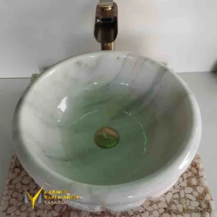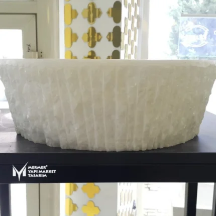 Beyaz Mermer Dışı Mucartalı Kavun Dilimli Lavabo