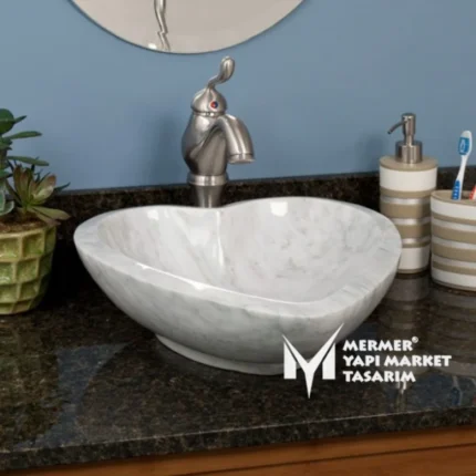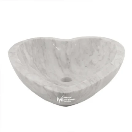 Beyaz Mermer Kalp Şekil Lavabo