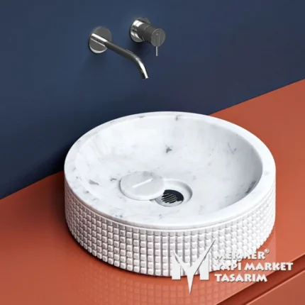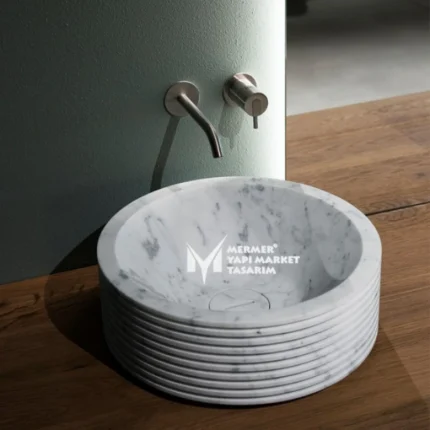 Beyaz Mermer Line Tasarım Silindir Lavabo
