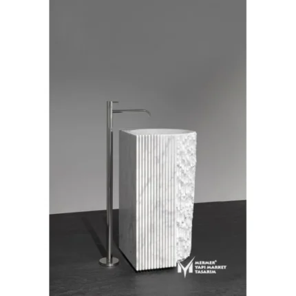 Beyaz Mermer Özel Tasarım Dikey Lavabo