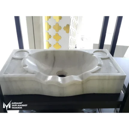 Beyaz Mermer Kovuk Dizayn Lavabo