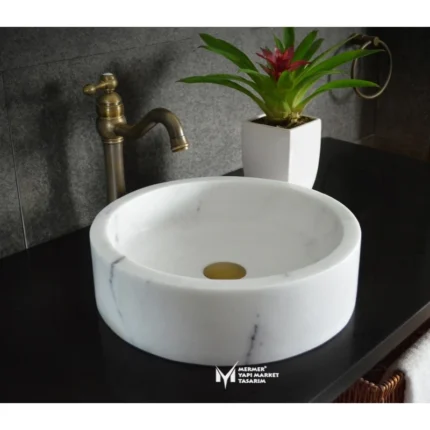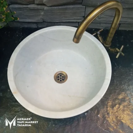 Beyaz Mermer Yuvarlak Lavabo