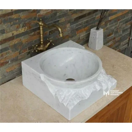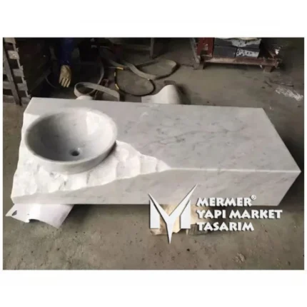 Beyaz Mermer Unfinished Dizayn Tezgah Lavabo