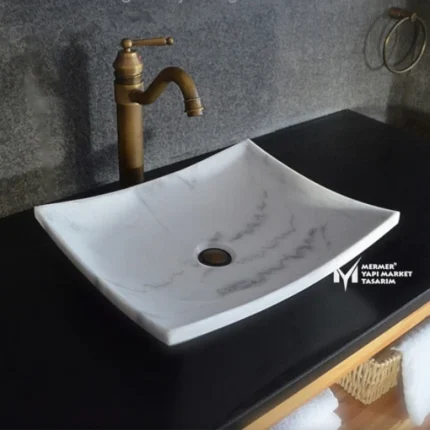 Beyaz Mermer V Çanak Lavabo