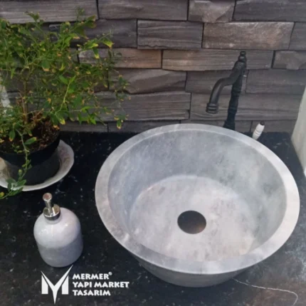 Gri Mermer Silindir Lavabo