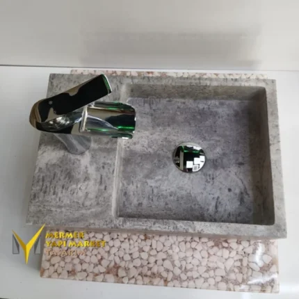 Gümüş Traverten Batarya Çıkışlı Köşeli Lavabo