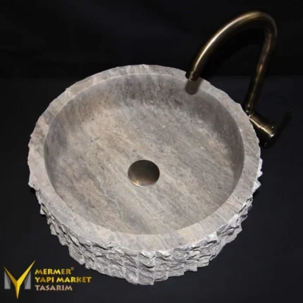 Gümüş Traverten Papatya Model Lavabo