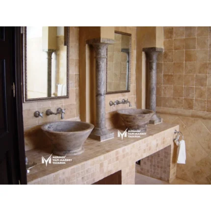 Gümüş Traverten Silindir Lavabo