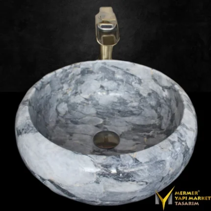 Gümüş Traverten Yuvarlak Lavabo