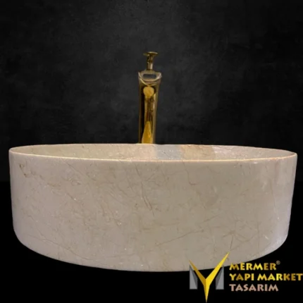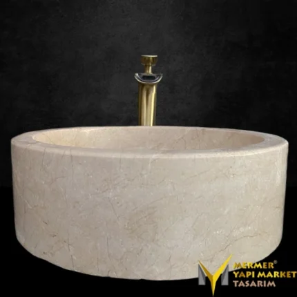 Bej Mermer Kalın Kenar Silindir Lavabo