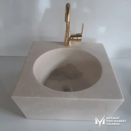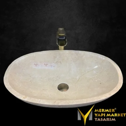 Bej Mermer Kum Saati Model Dikey Lavabo
