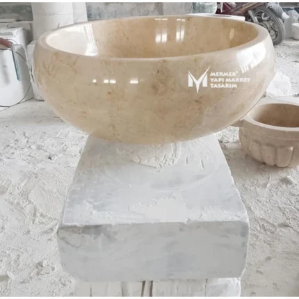 Bej Mermer Kavun Dilimli Ayaklı Köşe Kurna