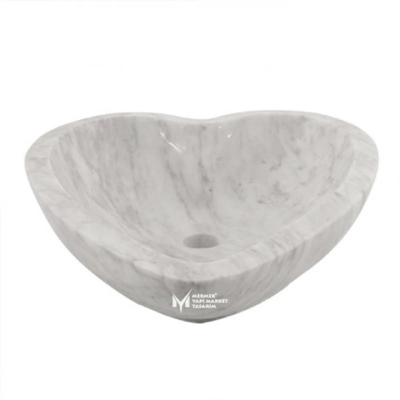 Ana Sayfa Ürünler Mutfak-Banyo & Hamam Doğal Taş Lavabolar Beyaz Mermer Kalp Şekil Lavabo