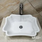 Ana Sayfa Ürünler Mutfak-Banyo & Hamam Doğal Taş Lavabolar Beyaz Mermer Kenarları Kıvrımlı Kare Lavabo