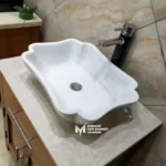 Beyaz Mermer Kenarları Kıvrımlı Kare Lavabo