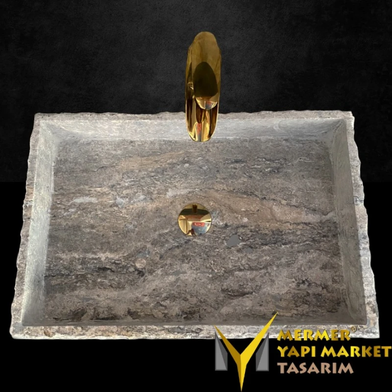 Ana Sayfa Ürünler Mutfak-Banyo & Hamam Doğal Taş Lavabolar Gümüş Traverten İnce Kenar Dikdörtgen Lavabo