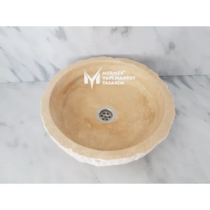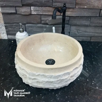 Traverten Dışı Patlatma Kalın Kenar Yuvarlak Lavabo