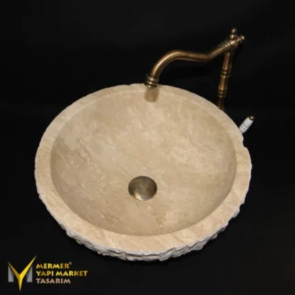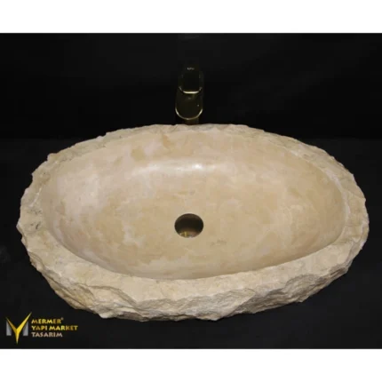 Traverten Doğal Patlatma Çanak Lavabo