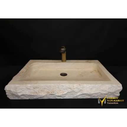 Traverten Doğal Patlatma Kare Lavabo