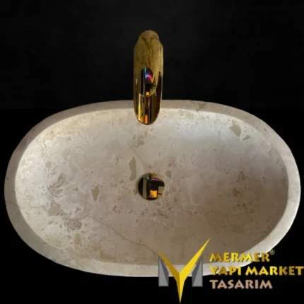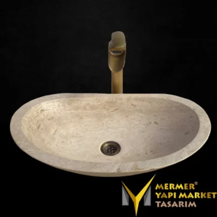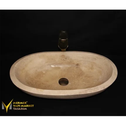 Traverten Elips Kayık Lavabo