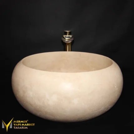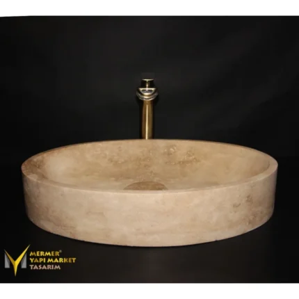 Traverten Gider Kapaklı Bombeli Dizayn Lavabo