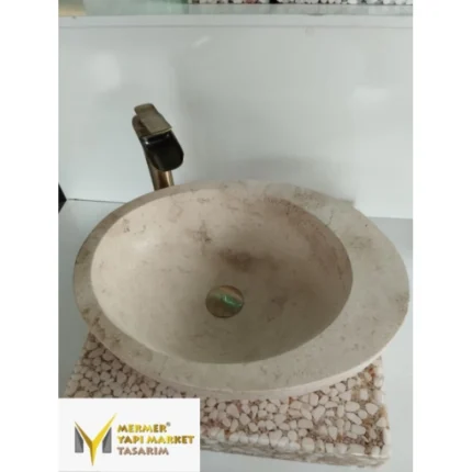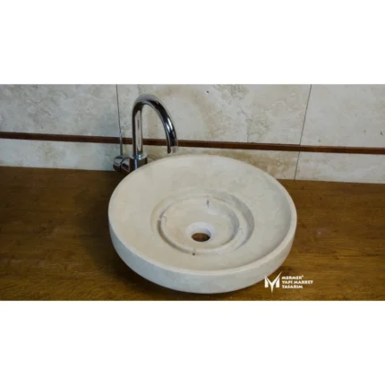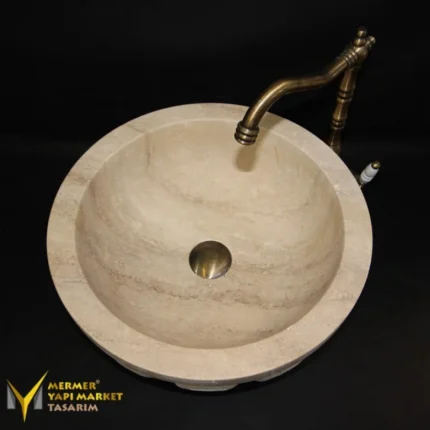 Traverten Katlı Gizli Giderli Yuvarlak Lavabo
