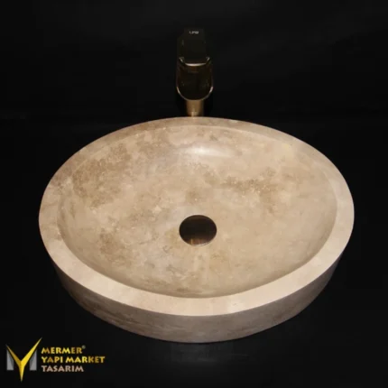 Traverten Özel Dizayn Yuvarlak Lavabo