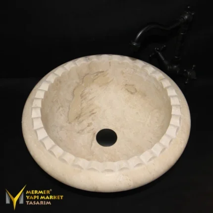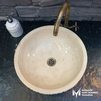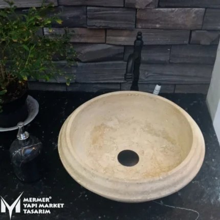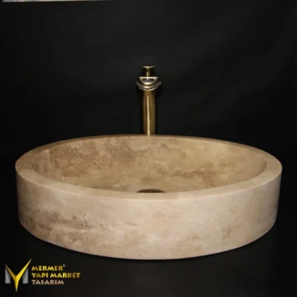 Traverten Özel Dizayn Yuvarlak Lavabo
