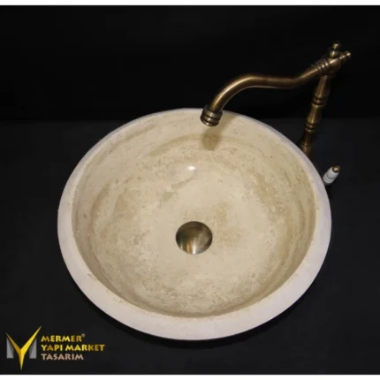 Traverten Özel Kesim Yuvarlak Lavabo