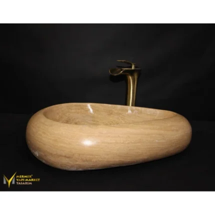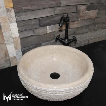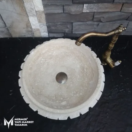Klasik Traverten Çakıl Tasarım Mini Lavabo