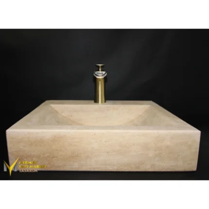 Klasik Traverten Batarya Çıkışlı Kare Lavabo