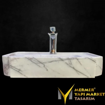 Leylak Beyaz Mermer Tasarım Derin Kare Lavabo