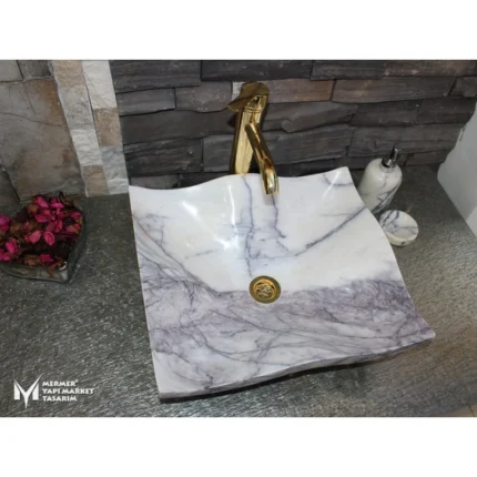 Leylak Mermer Dalgalı Yaprak Lavabo