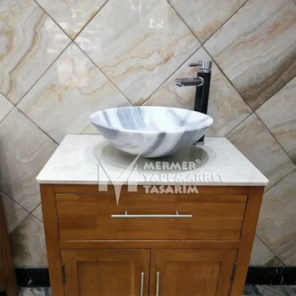 Marmara Pijamalı Mermer Çanak Lavabo