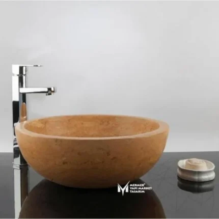 Sarı Traverten Yuvarlak Lavabo
