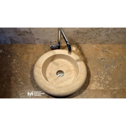 Traverten Basık Yuvarlak Lavabo