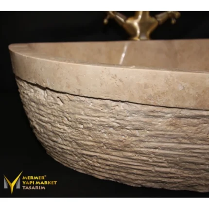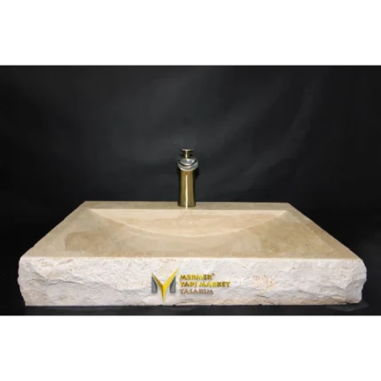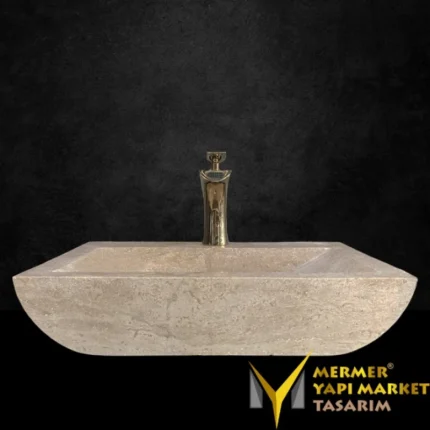 Traverten Batarya Çıkışlı Kalın Kenar Yay Model Lavabo