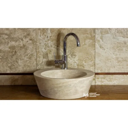 Traverten Basık Bombeli Lavabo