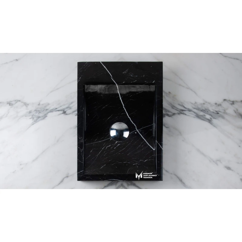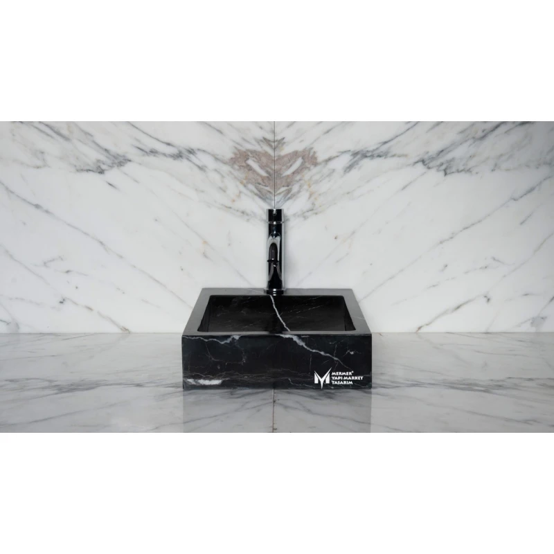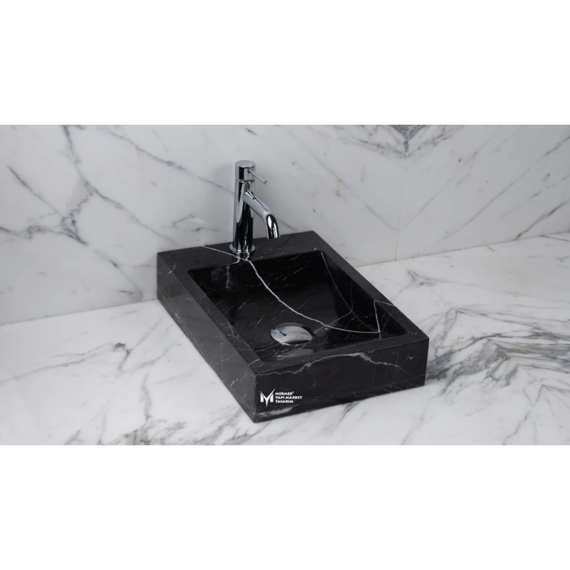 Ana Sayfa Ürünler Mutfak-Banyo & Hamam Doğal Taş Lavabolar Toros Siyah Yandan Batarya Çıkışlı Kare Lavabo