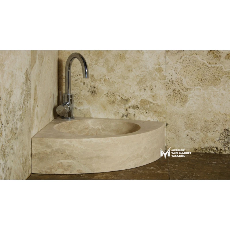 Ana Sayfa Ürünler Mutfak-Banyo & Hamam Doğal Taş Lavabolar Traverten Batarya Çıkışlı Köşe Lavabo