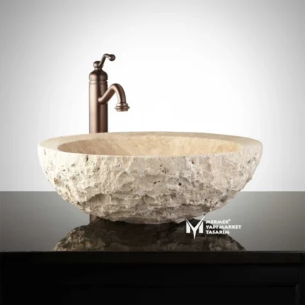 Ana Sayfa Ürünler Mutfak-Banyo & Hamam Doğal Taş Lavabolar Traverten Dışı Patlatma Kalın Kenar Yuvarlak Lavabo