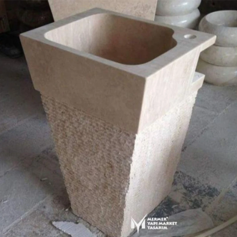Ana Sayfa Ürünler Mutfak-Banyo & Hamam Doğal Taş Lavabolar Traverten Kare Dışı Patlatma Özel Tasarım Dikey Lavabo